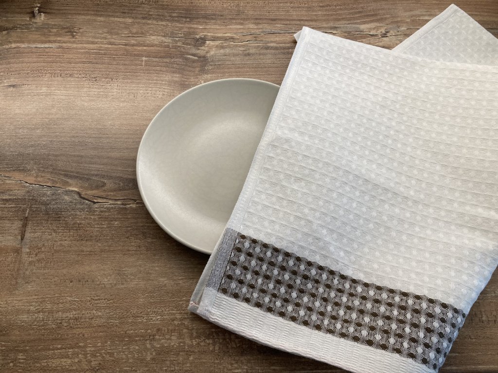 Kuchyňská utěrka je vyrobená z vaflové látky - směsi lnu a bavlny. Díky unikátnímu složení a vlastnostem přírodní lněné látky tato utěrka výborně saje a rychle schne, nemnoží se v ní bakterie a plísně, navíc je velice odolná vůči mechanickému poškození na rozdíl od jiných látek.